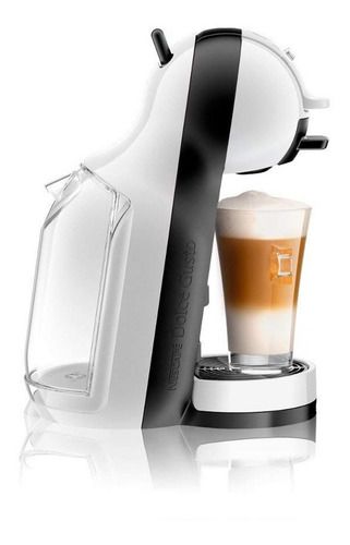 Detalles del productoCafetera de cápsulas Dolce Gusto Mini Me de De'Longhi en color blanco y negro. Compacta y con un diseño moderno.
