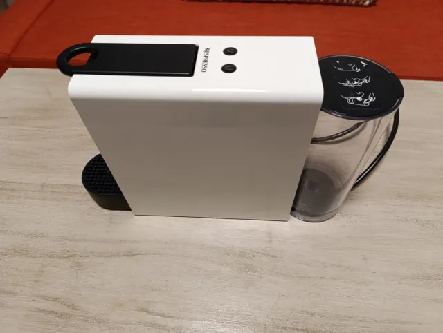 Detalles del productoCafetera de cápsulas Nespresso en color blanco. Diseño moderno y compacto. Se apaga automáticamente. Muy fácil manejo. Adjunto libro de instrucciónes.