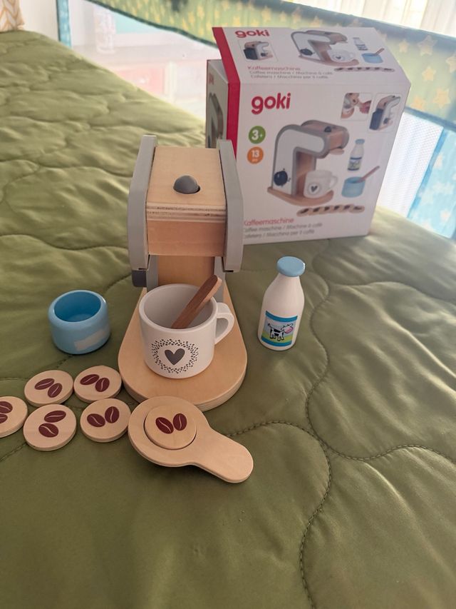 Detalles del productoJuego de cafetera de madera de la marca Goki. Incluye varios accesorios para jugar.