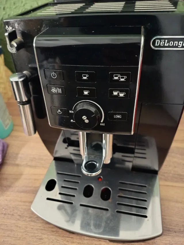 Detalles del productoCafetera de grano DeLonghi en color negro. Perfecta para preparar tu café favorito en casa.