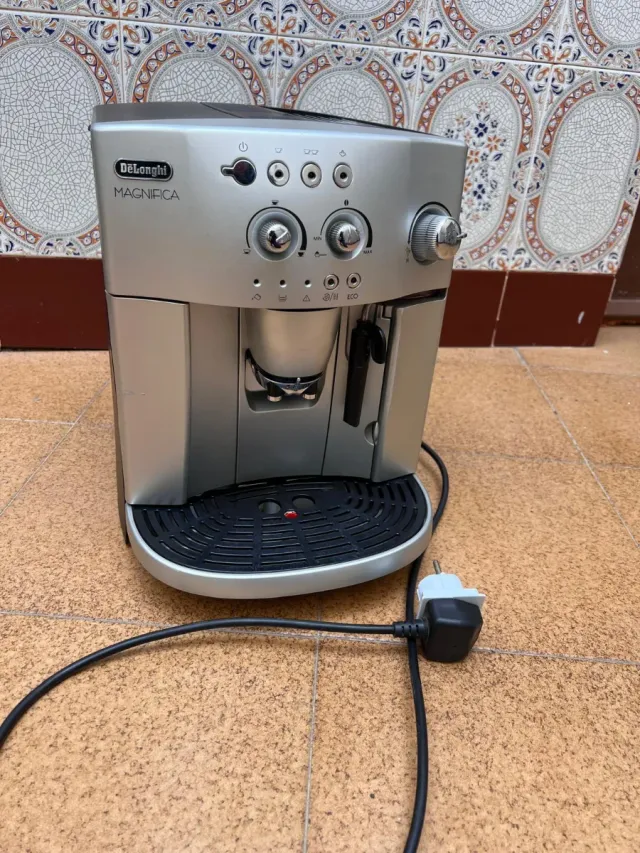 Detalles del productoCafetera automática DeLonghi Magnifica Esam 4200 en color plateado. Diseñada para preparar café de forma rápida y sencilla.