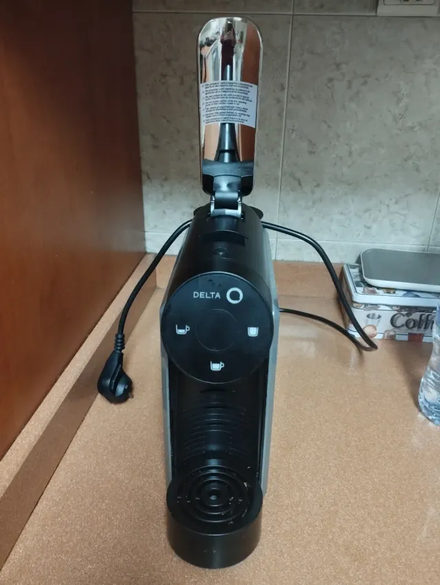 Detalles del productoCafetera Delta en color negro y gris.
