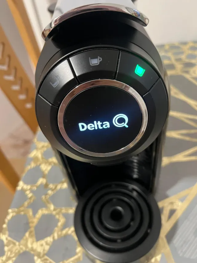 Cafetera de cápsulas Delta Q en color negro. Diseñada para preparar tu café de forma rápida y sencilla. - Pantalla digital. - Botones táctiles. - Indicador luminoso.