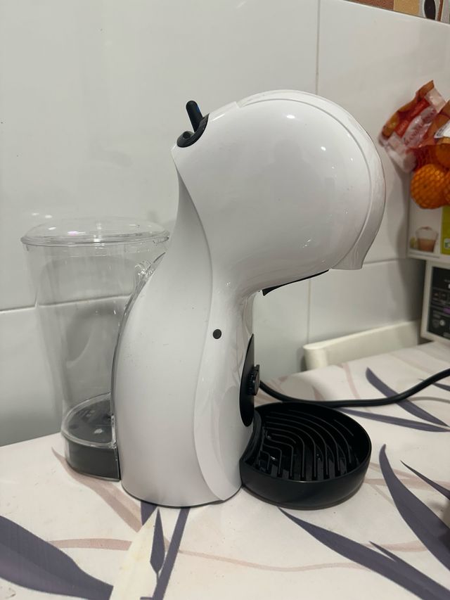 Detalles del productoCafetera blanca de cápsulas Dolce Gusto. Ideal para preparar café y otras bebidas.