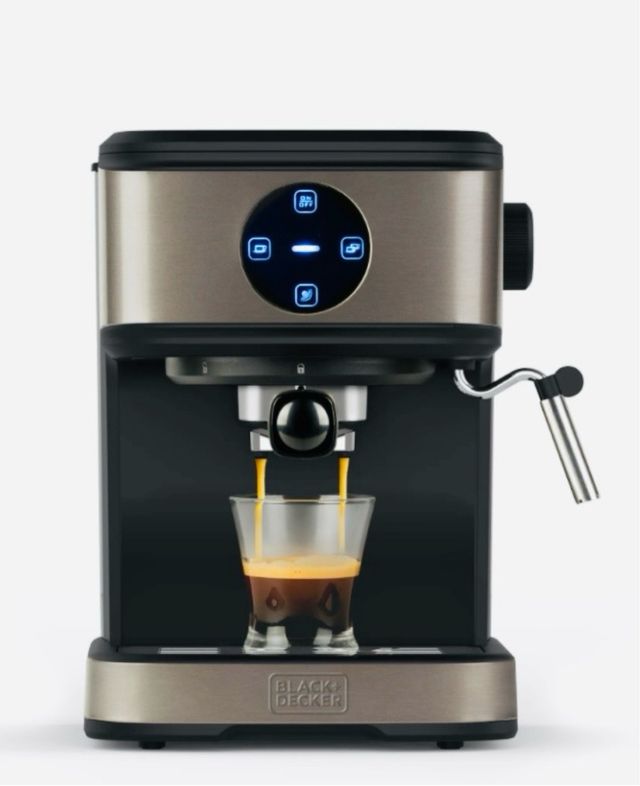 Detalles del productoCafetera eléctrica Black & Decker BXCO850E con acabado en inoxidable y negro. Tiene 20 bares de presión y una potencia de 850 W. Cuenta con sistema antigoteo, boquilla de vapor y sistemas Preinfusión y Extra Cream. Medidas: 27 x 29 x 20,5 (ancho x alto x fondo).
