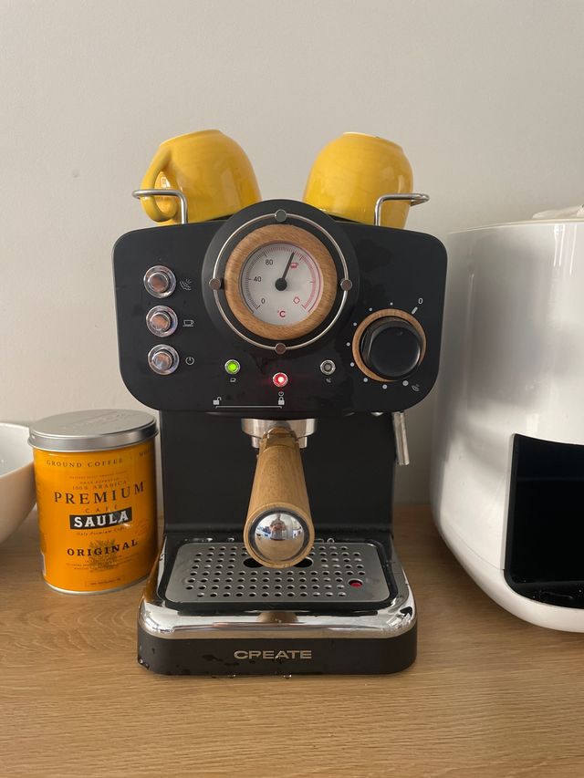 Detalles del productoCafetera de espresso con un diseño retro y elegante, perfecta para tu cocina.