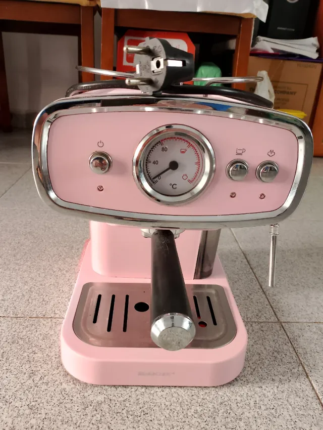 Detalles del productoCafetera espresso de estilo retro en color rosa. Está como nueva, con muy poco uso. Funciona perfectamente.
