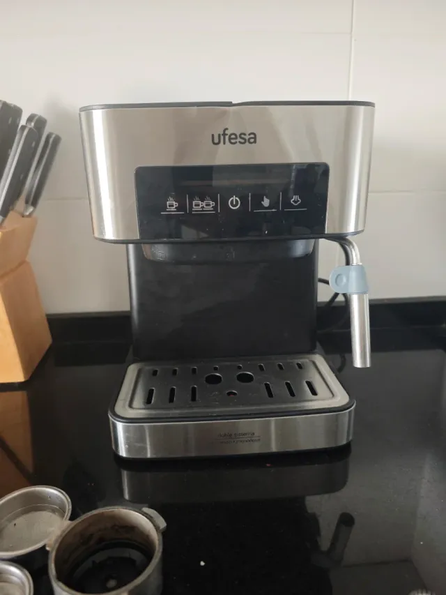 Detalles del productoCafetera Ufesa en perfecto estado para preparar espressos y capuchinos en casa. Incluye varios accesorios para un uso completo.