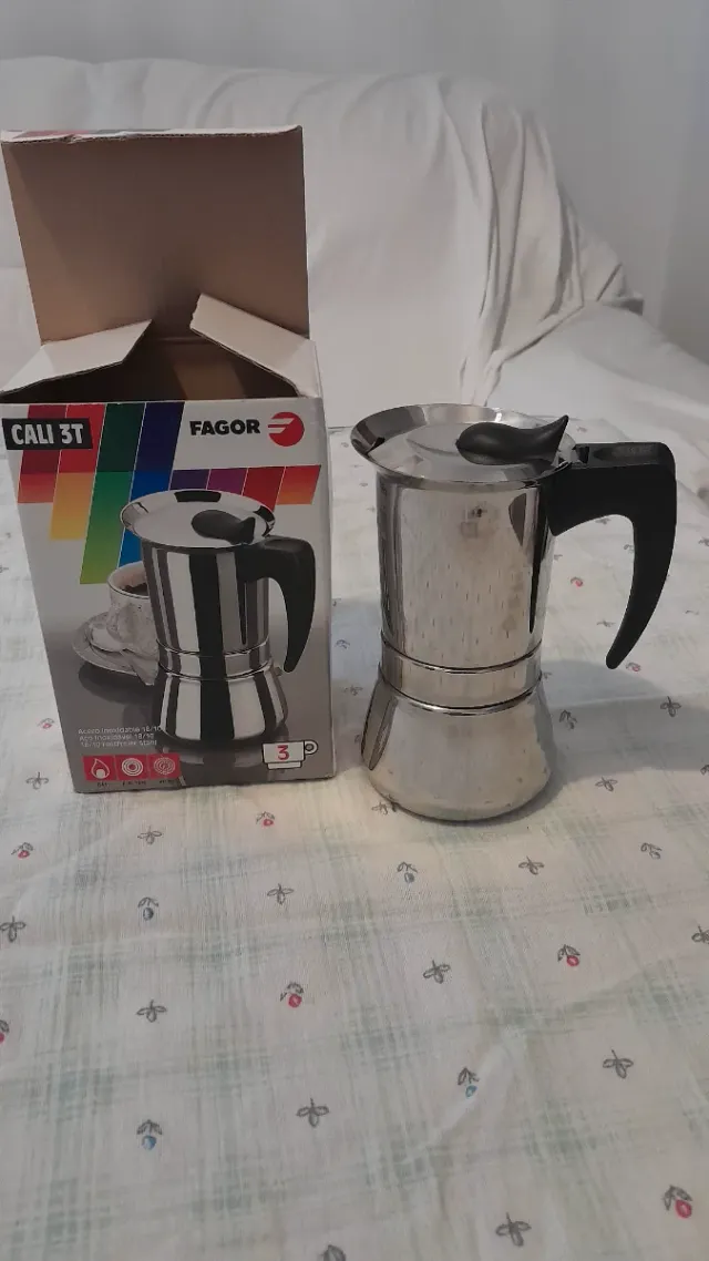 Detalles del productoCafetera italiana de la marca Fagor, modelo Cali 3T. Fabricada en acero inoxidable.