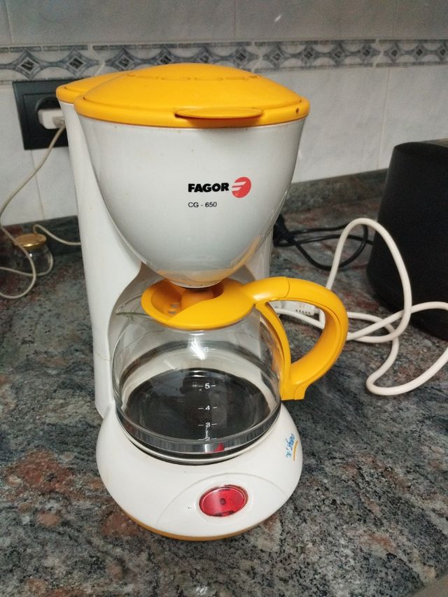 Detalles del productoCafetera de goteo Fagor en color blanco y amarillo.