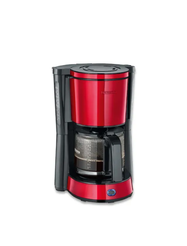 SEVERIN - Cafetera de goteo para 10 tazas, Cafetera de filtro / Cafetera americana con jarra de cristal, Con placa calefactora y desconexión automática, Negro / Rojo, KA