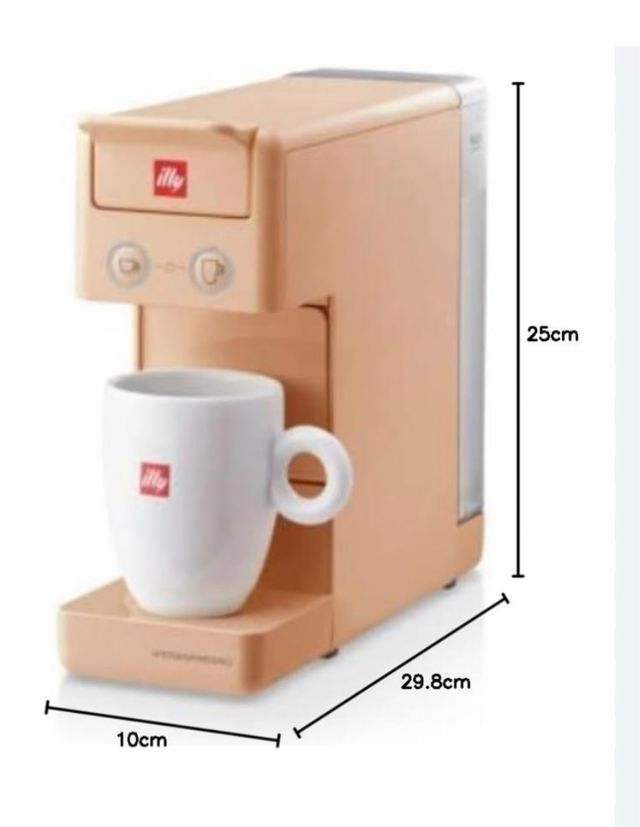 Detalles del productoCafetera Illy, en color beige claro. Es compacta y elegante.