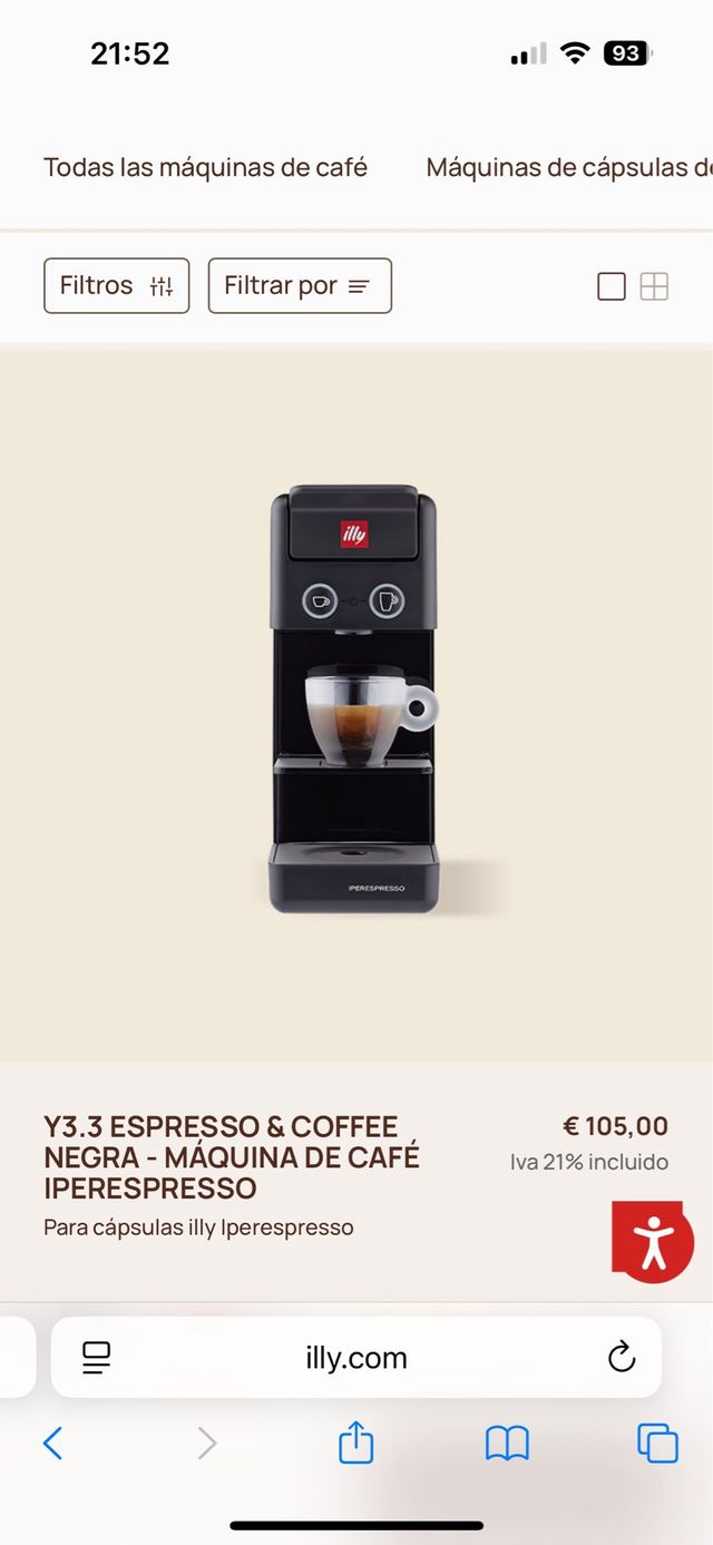 Cafetera Illy Y3.3 Espresso & Coffee precintada