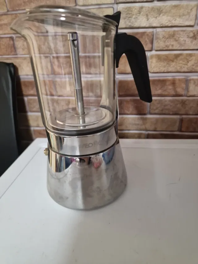 Cafetera italiana de cristal y metal