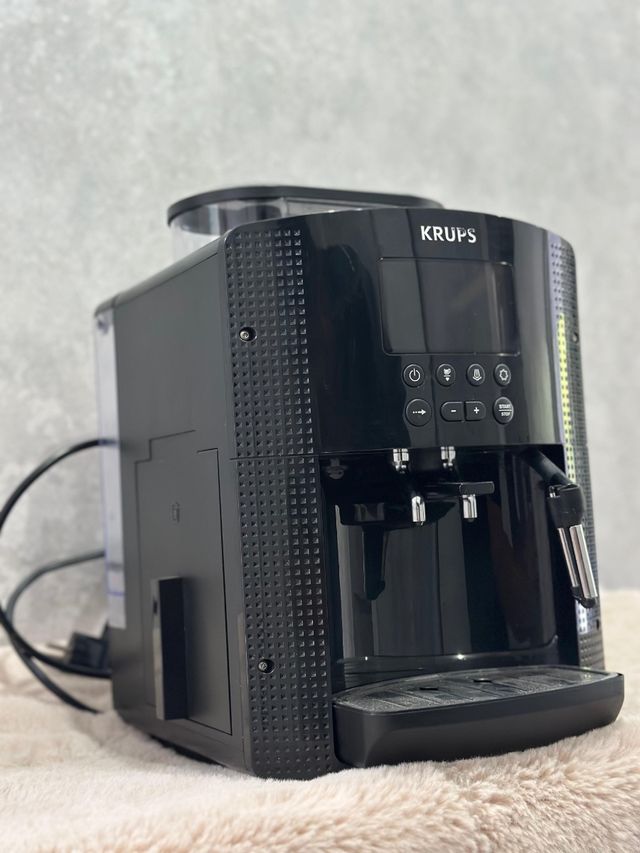 Detalles del productoCafetera Krups automática de color negro, ideal para preparar café recién molido.