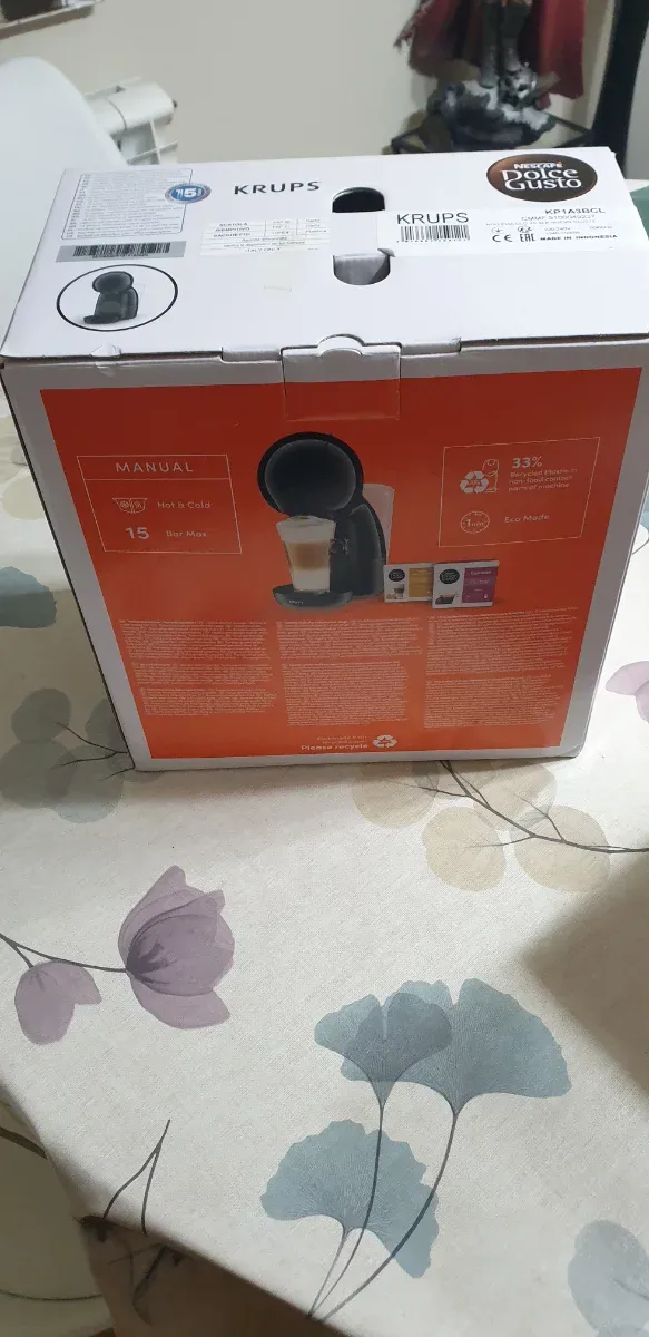 Detalles del productoCafetera Dolce Gusto de la marca Krups. Permite preparar bebidas calientes y frías.