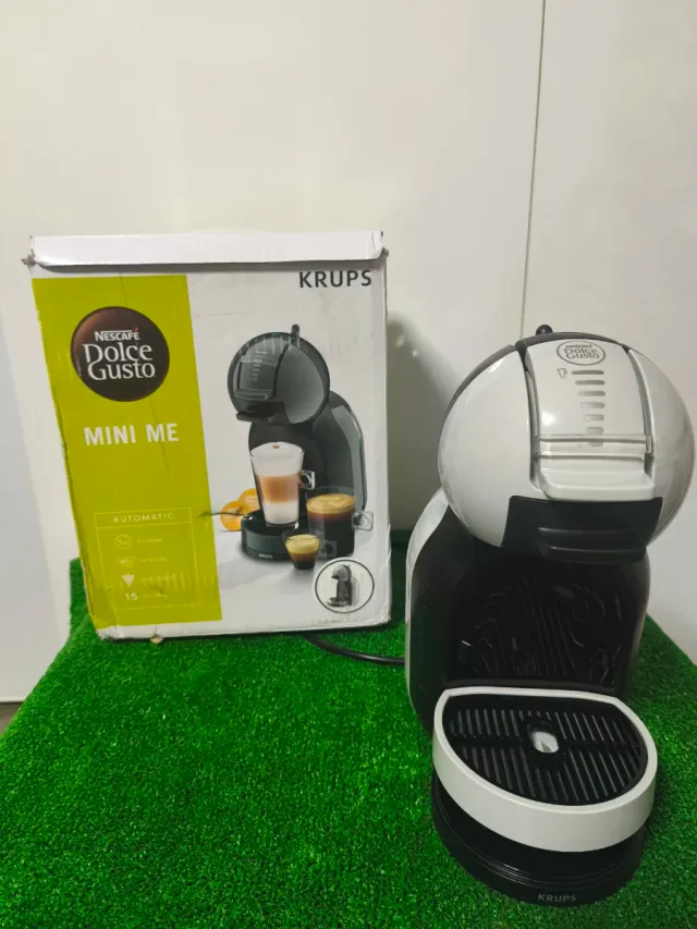 Cafetera de cápsulas Krups Dolce Gusto, modelo Mini Me. Diseño compacto y moderno. - Color blanco y negro. - Sistema automático. - Presión de 15 bares.