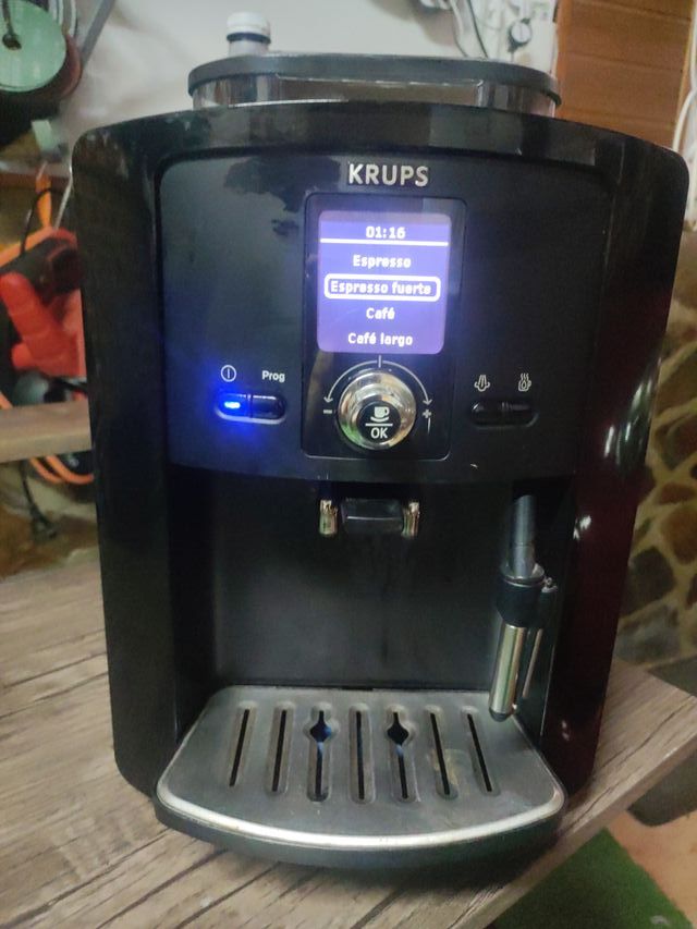 Detalles del productoCafetera Krups EA81 superautomática para café en grano. Permite preparar café normal y descafeinado, dependiendo del tipo de grano que le pongas. No filtros, ni extras solo café y echarle agua, es muy practica y comoda.