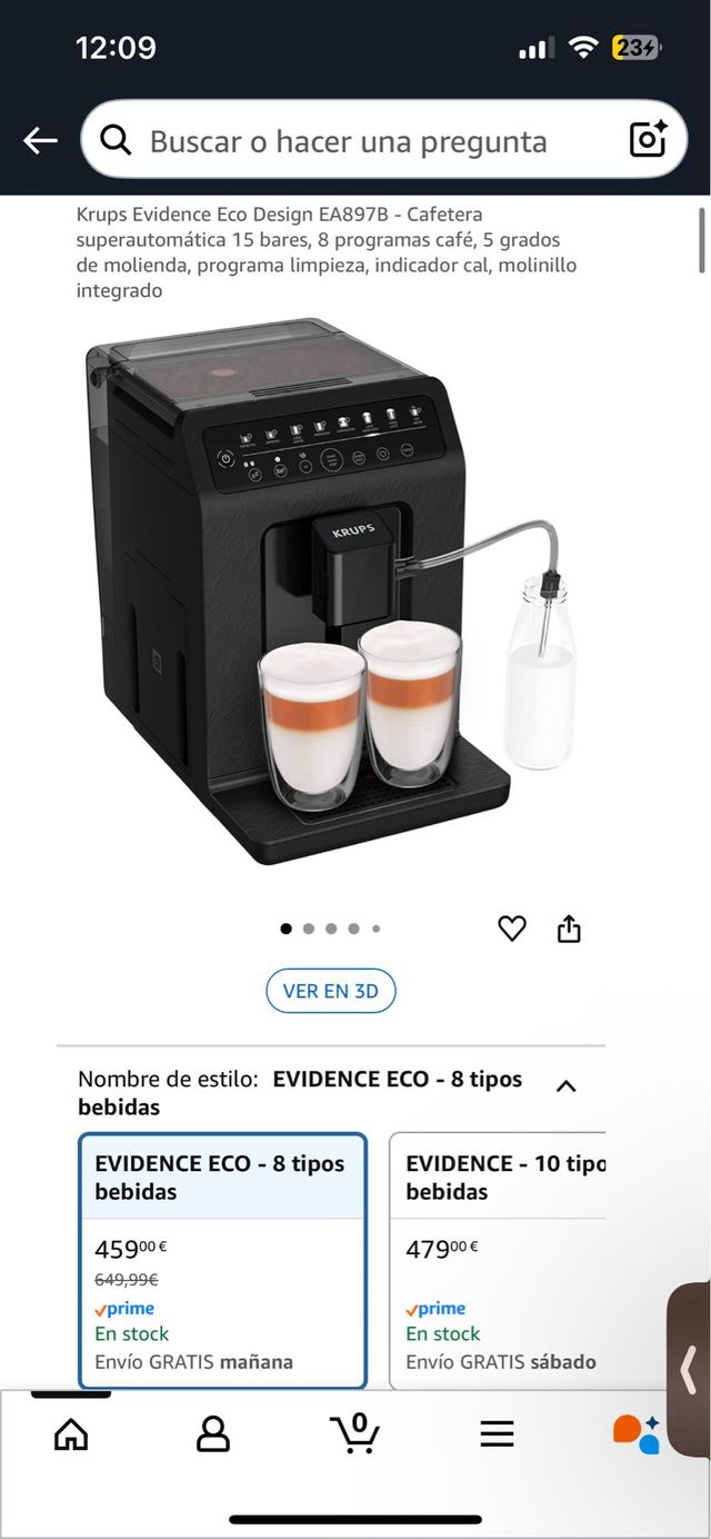Detalles del productoKrups Evidence Eco Design EA897B - Cafetera superautomática 15 bares, 8 programas café, 5 grados de molienda, programa limpieza, indicador cal, molinillo integrado