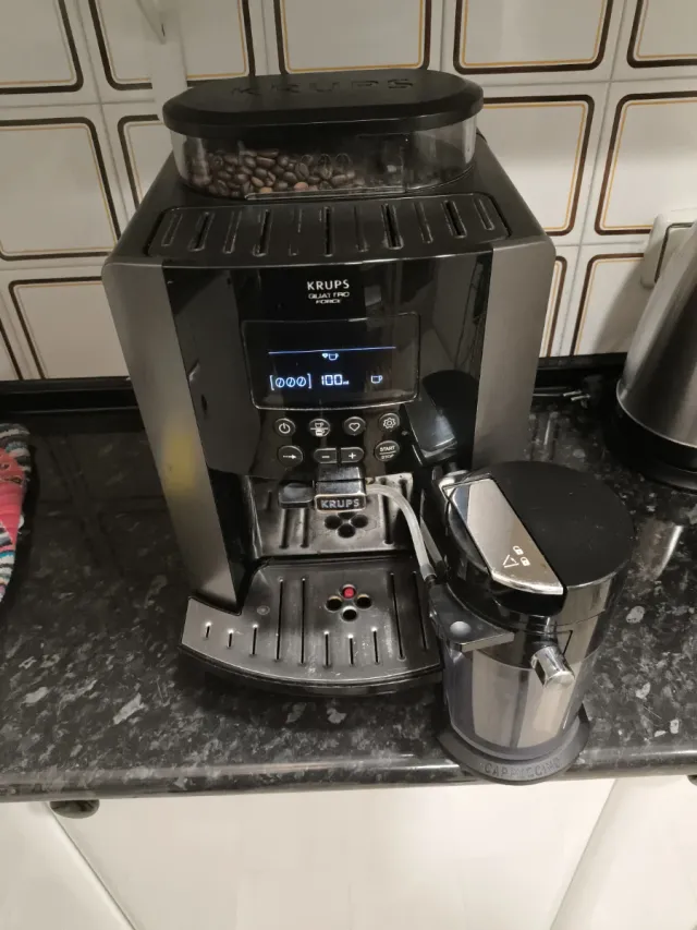 Detalles del productoCafetera superautomática Krups Quatro Force en color negro y gris. Diseñada para preparar café de forma rápida y eficiente.