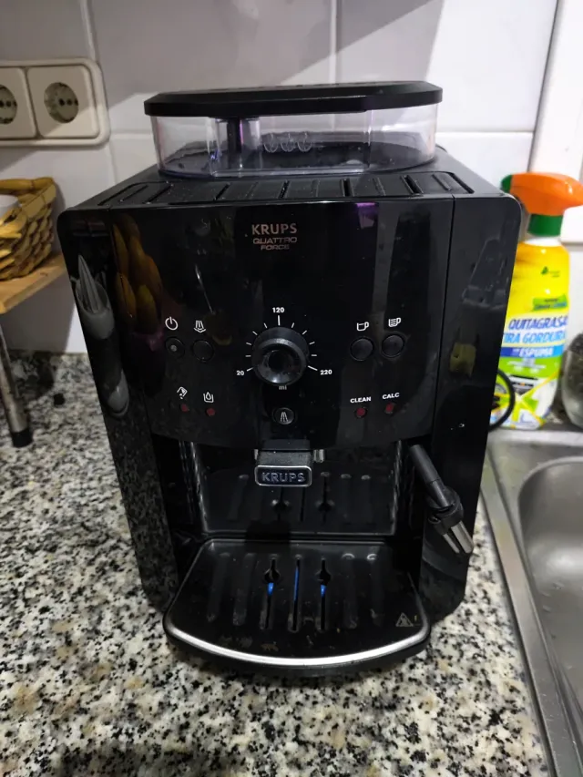 Detalles del productoCafetera automática Krups Quattro Force en color negro. Perfecta para preparar café.