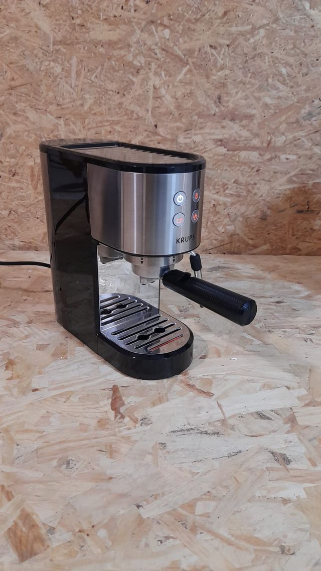 Detalles del productoCafetera espresso Krups Virtuoso Essential (modelo XP4418), diseño compacto en acero inoxidable y negro, con bomba de 15 bares y sistema Thermoblock para un calentamiento rápido. Ideal para preparar espressos y cappuccinos en casa con buena crema.