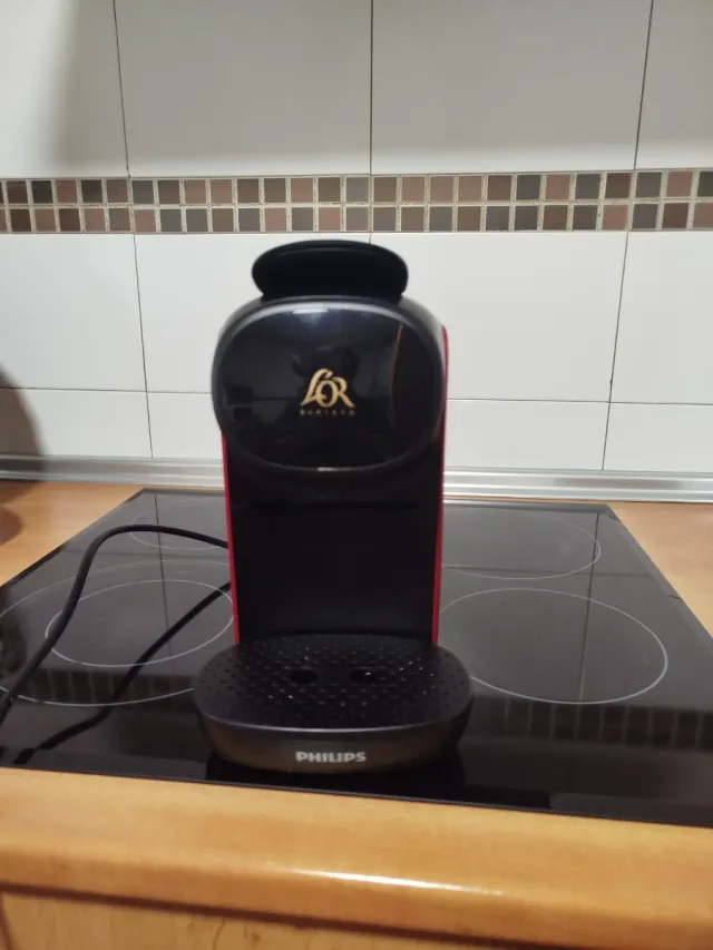 Cafetera de cápsulas LOR Barista en color rojo y negro. - Diseño moderno y compacto. - Marca Philips.