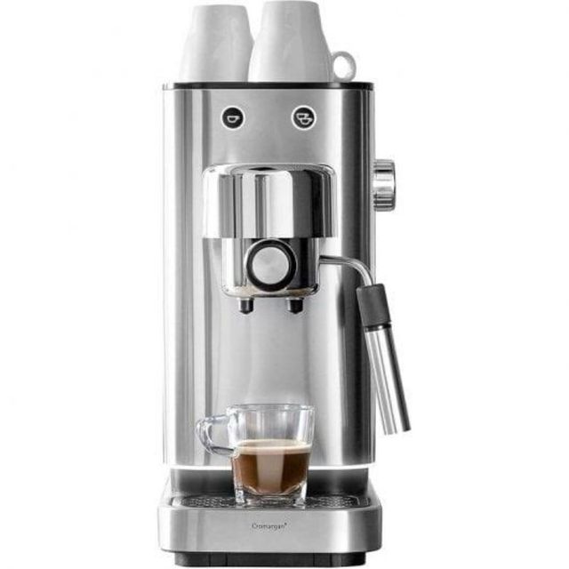 Detalles del productoCafetera de espresso Lumero con acabado en acero inoxidable.