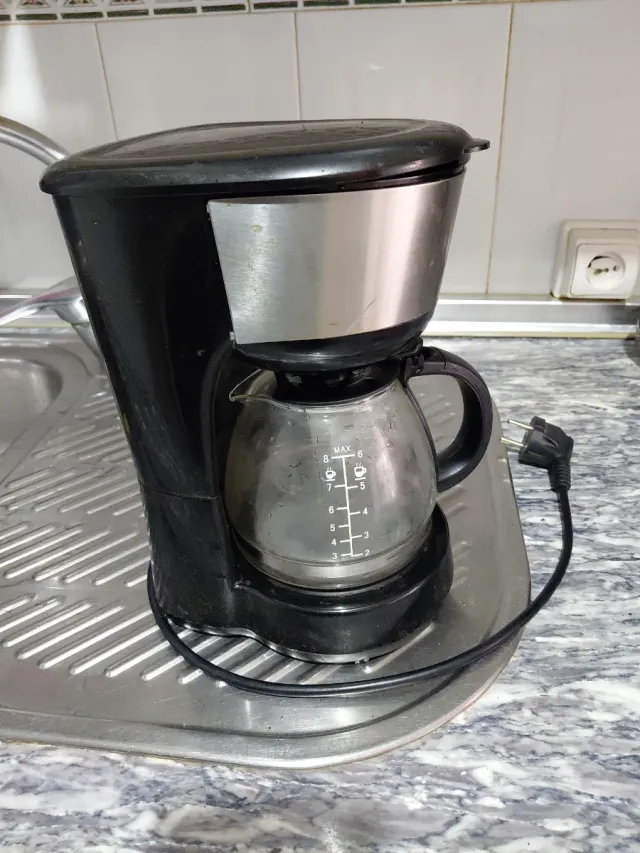 Cafetera de goteo en color negro con jarra de cristal. - Jarra con medidor de tazas. - Base antideslizante. - Filtro permanente. No se envia