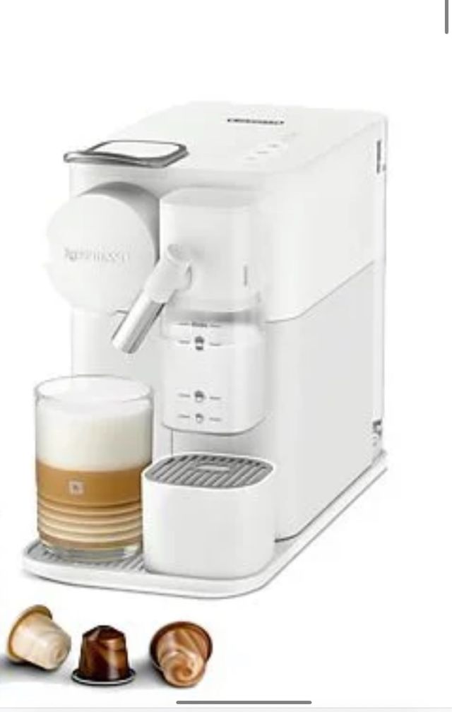Detalles del productoCafetera Nespresso de color blanco, ideal para preparar deliciosas bebidas de café.