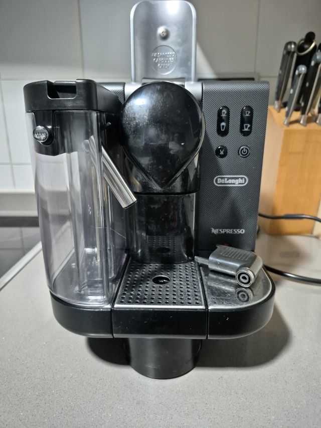 Detalles del productoCafetera nespresso delonghi de cápsulas funciona bien pero cuando hace el café pierde agua en la zona donde se introduce la cápsula con todos los accesorios,espumadera de leche y hace te