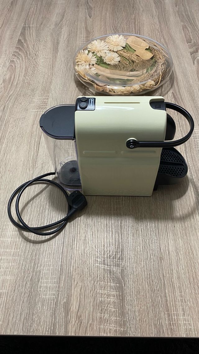 Detalles del productoCafetera Nespresso DeLonghi en color beige. Ideal para preparar tu café y disfrutar de un sabor exquisito.