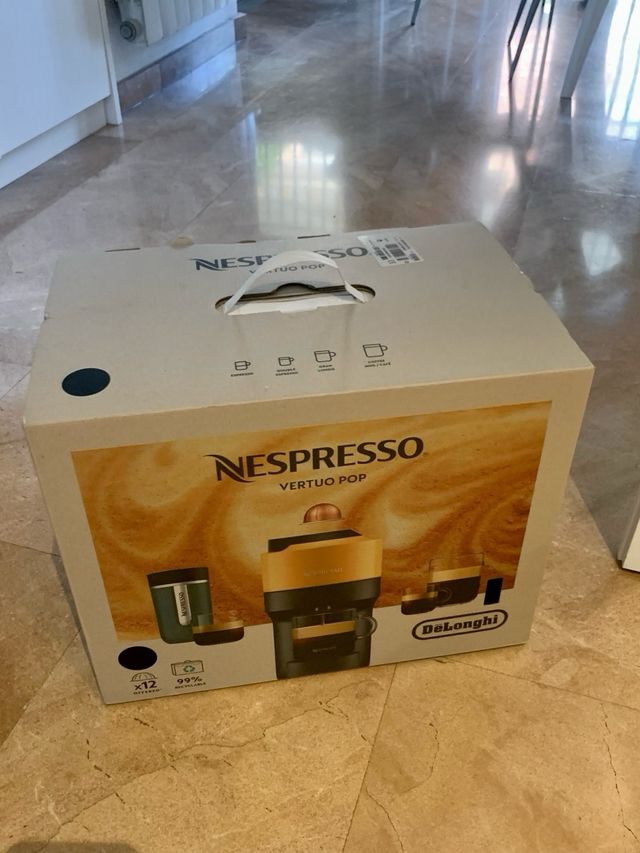 Cafetera nueva a estrenar para cápsulas nespreso Vertuo del tipo centrifygado Marca Delonghi pop color negro antracita En su caja