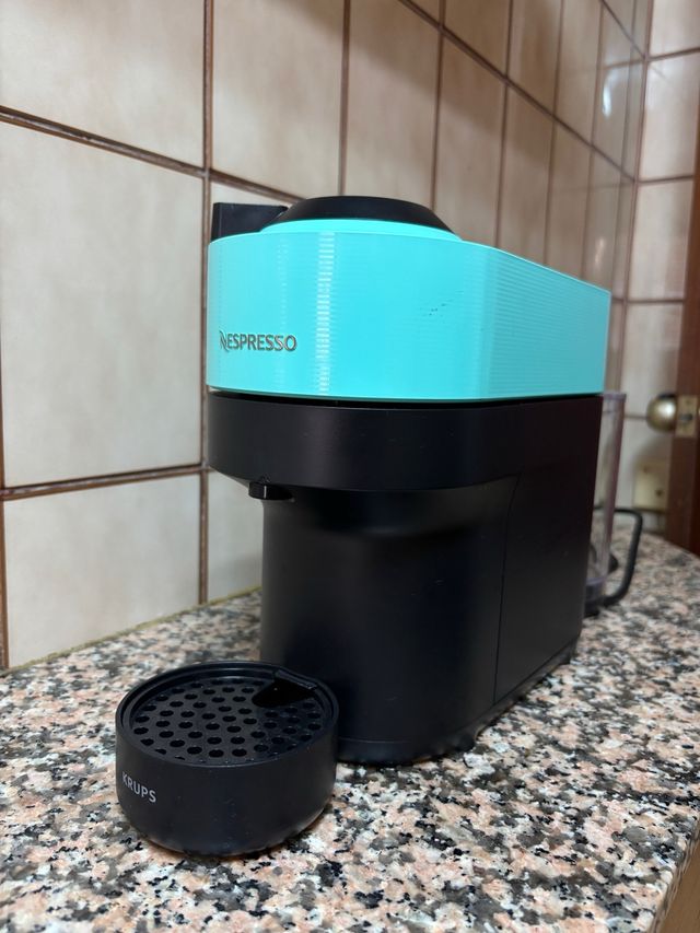 Detalles del productoCafetera Nespresso Vertuo de color turquesa y negro. Está en muy buen estado.