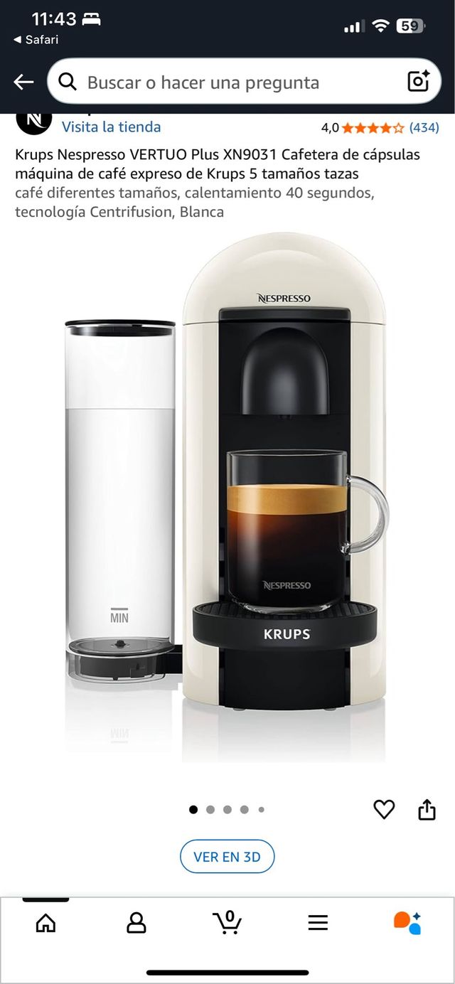 Detalles del productoCafetera Nespresso Krups Vertuo Plus de color blanco en perfecto estado. Es una máquina de café expreso que te permitirá disfrutar de un café delicioso en pocos segundos.