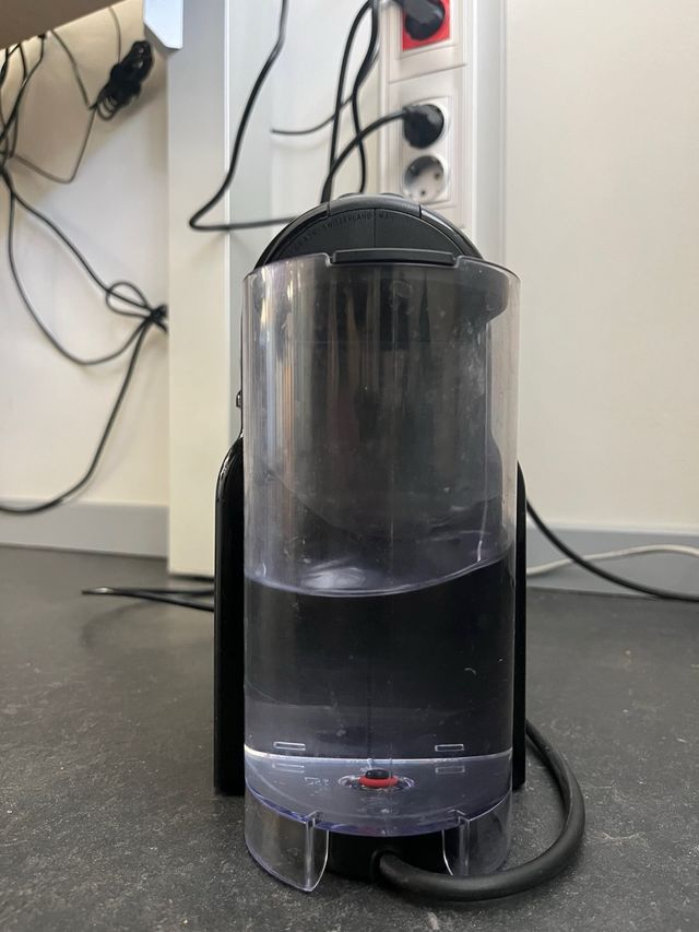 Cafetera Nespresso de color negro con depósito de agua. - Diseño compacto. - Depósito de agua transparente.