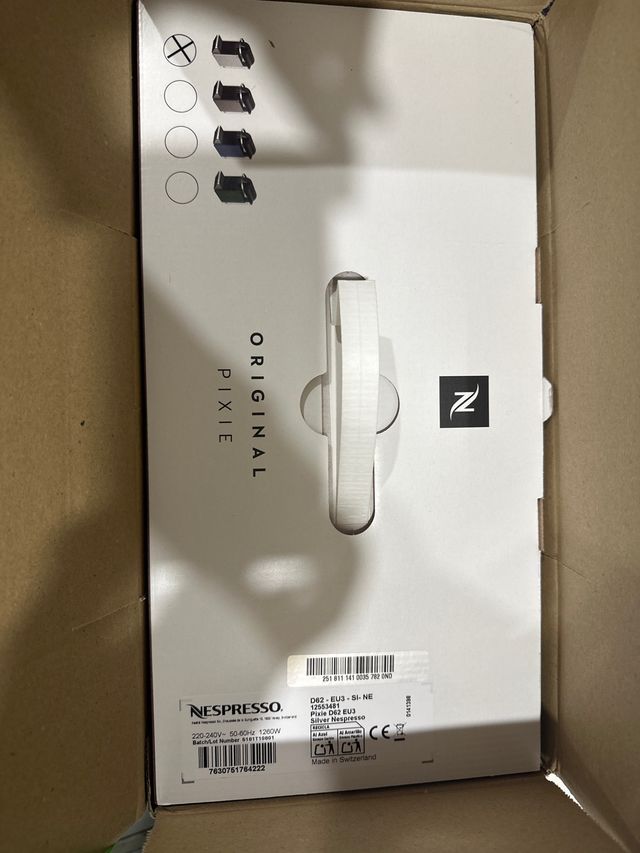 Cafetera Nespresso modelo Pixie en color Silver. - Modelo: Pixie D62 EU3 - Color: Silver - Voltaje: 220-240V - Potencia: 1260W - Fabricada en Suiza