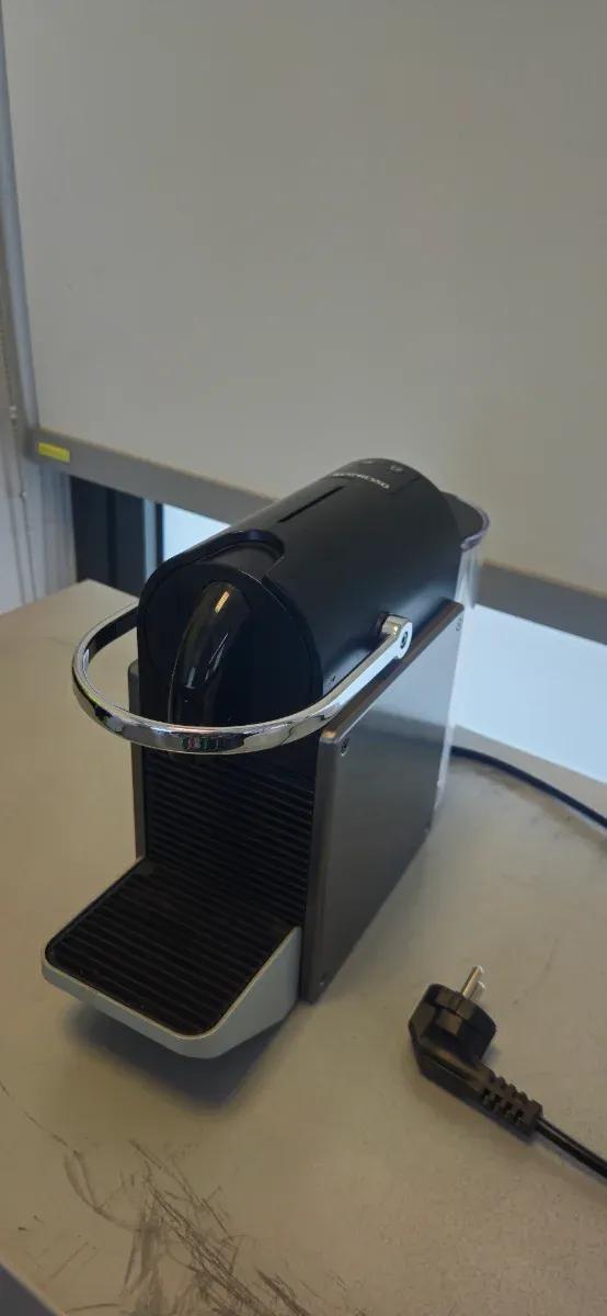 Detalles del productoCafetera Nespresso de diseño elegante en color plata.