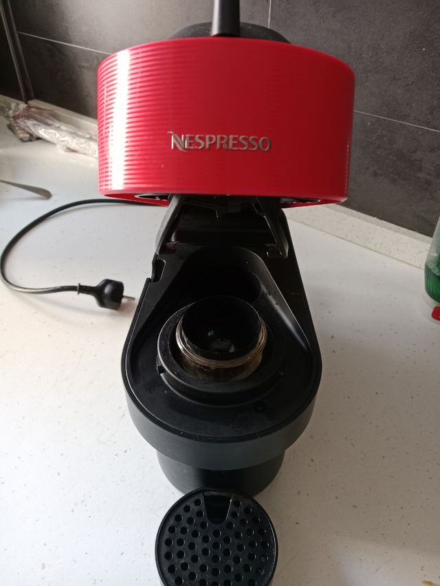 Cafetera Nespresso de color rojo en buen estado. - Modelo compacto y fácil de usar. - Incluye la cafetera y la bandeja recoge-gotas.