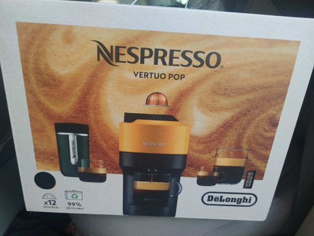 Detalles del productoEL REGALO PERFECTO PARA NAVIDAD PARA LOS MÁS CAFETEROS. ¡APROVECHA ESTA OPORTUNIDAD! Cafetera Nespresso Vertuo Pop en color negro, nueva a estrenar con su kit de inicio y 12 cápsulas de regalo. La caja está sin abrir. 3 años de garantía con Nespresso cuando registres la cafetera en Nespresso. Su precio original es de 99 euros. Con la cafetera Vertuo Pop podrás preparar el café deseado fácilmente con un solo toque. Además, ofrece la opción de controlarla desde tu móvil a través de la conectividad Bluetooth, permitiéndote ver toda la información relativa a tu máquina desde la app de Nespresso, realizar pedidos de cápsulas, recibir avi