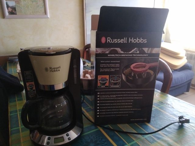 Detalles del productoRussell Hobbs Cafetera de Goteo Colours Plus - 15 Tazas, Jarra Cristal 1,5L, Soporte Filtro Extraíble, Tecnología WhirlTech, Cuchara Medidora, Pantalla LCD, Programable.usada tres veces..