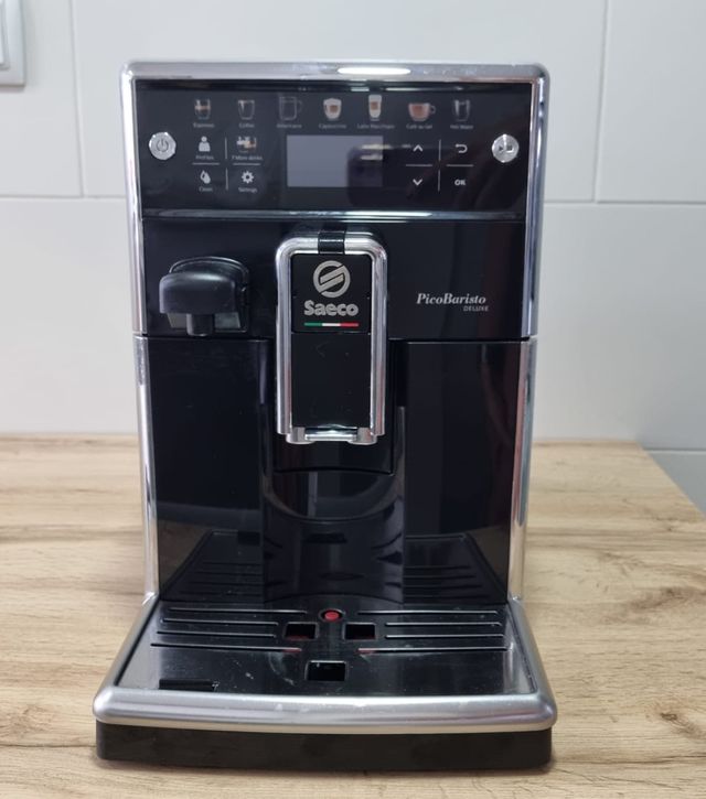 Detalles del productoCafetera superautomática Saeco PicoBaristo Deluxe en acabado negro y cromado.