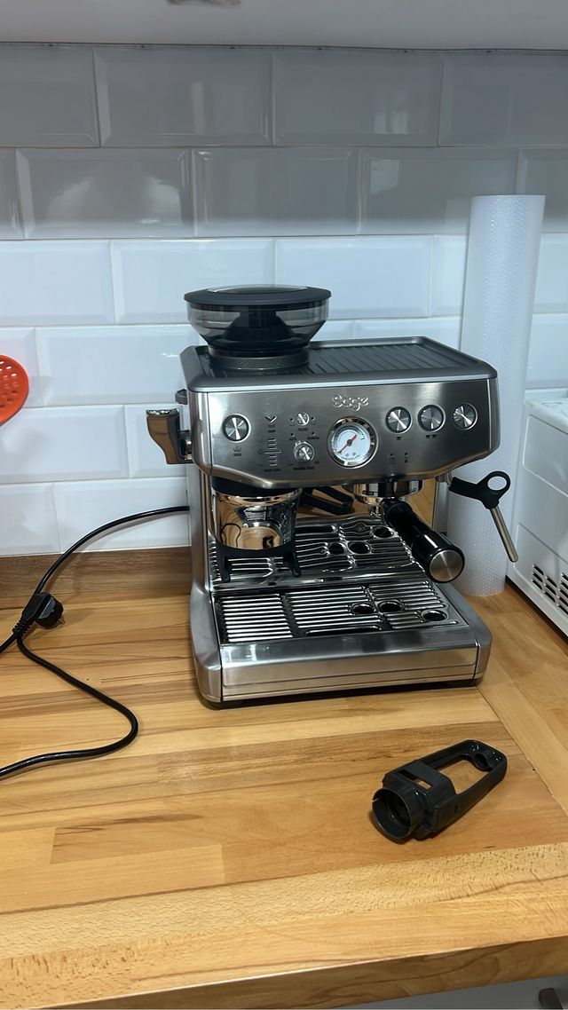Detalles del productoCafetera espresso Sage Barista Express Impress en acabado plateado.