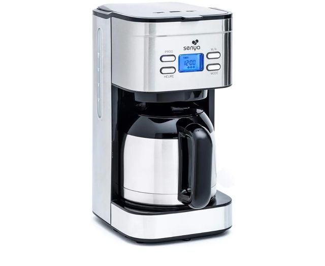 Cafetera programable Senya de acero inoxidable.
