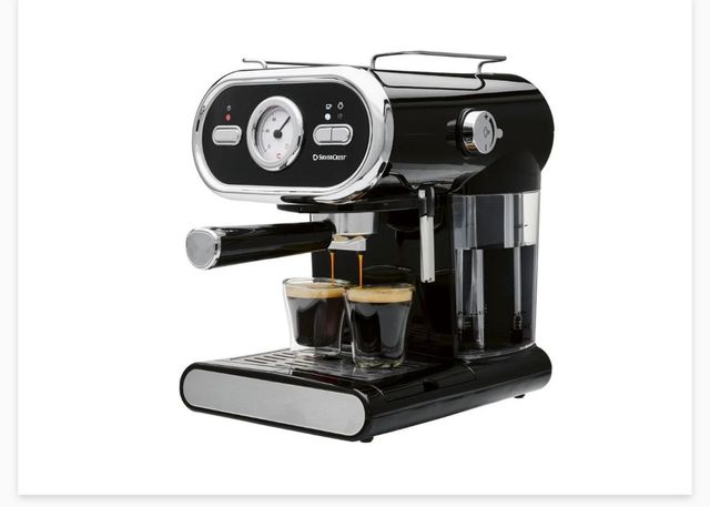 Cafetera SilverCrest a estrenar, aún en su embalaje original. - Color: Negro. - Incluye dos vasos de espresso.