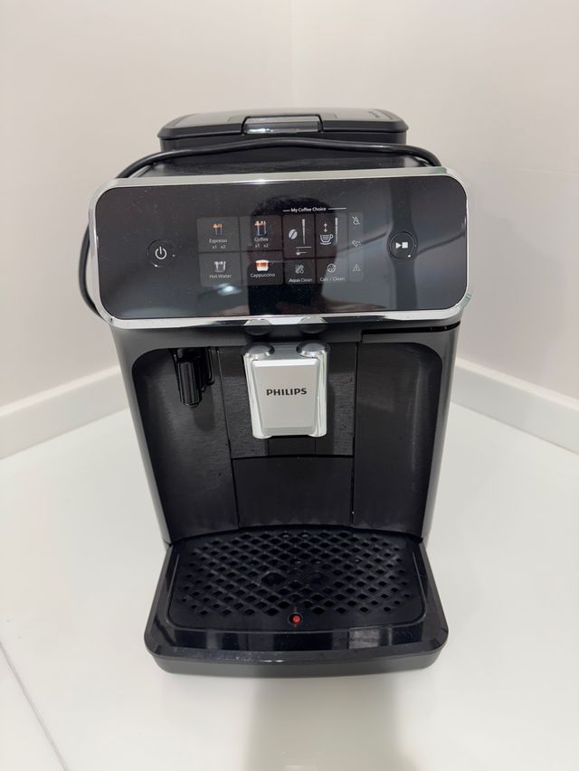 Detalles del productoCafetera súper automática Philips Serie 2300 en color negro. comprada en mayo por lo que prácticamente tienes la garantía completa. La he usado dos veces y la he cambiado por otra. conservo caja original y regalo kit.