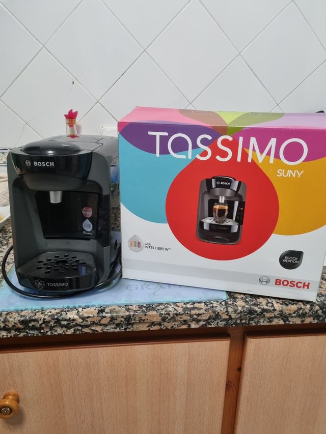 Vendo cafetera TASSIMO Suny BOSCH nueva en su caja con sus instrucciones y doss cajas de capsulas ( a una le faltan 2 capsulas que son las veces que se ha usado la cafetera).