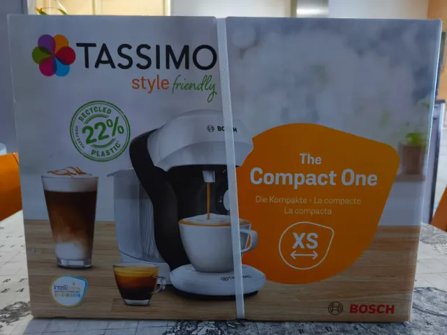 Detalles del productoCafetera Tassimo Bosch modelo Compact One. Blanca. Nueva a estrenar, en caja precintada, prodendente de premio de sorteo. Precio MediaMarkt 60€.