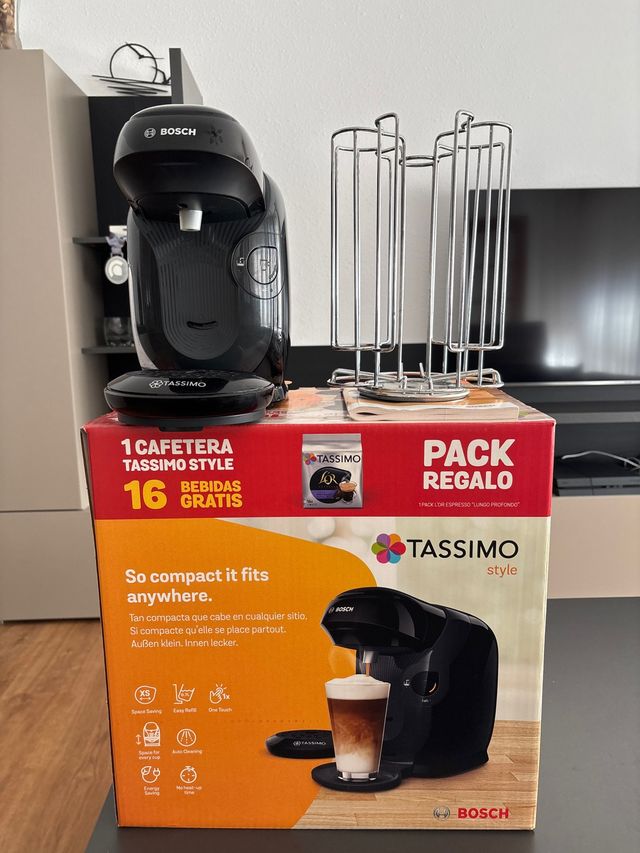 Cafetera Tassimo Style de Bosch en color negro. - Diseño compacto. - Fácil de usar. - Incluye soporte para cápsulas.