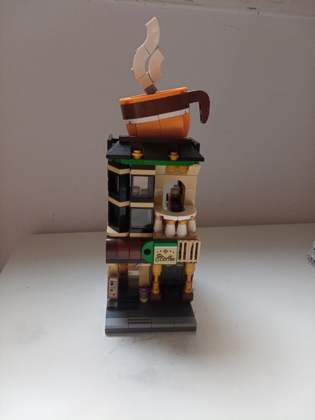 Detalles del productoEdificio cafetería lego (falso), es un producto de la tienda miniso, no incluye instrucciones, se podrán encontrar por internet, está perfecto, tiene algo de polvo y es perfecto para decorar. Pertenece a una serie de edificios acoplables del set de edificios, se entrega tal y como se ve, cualquier duda por privado
